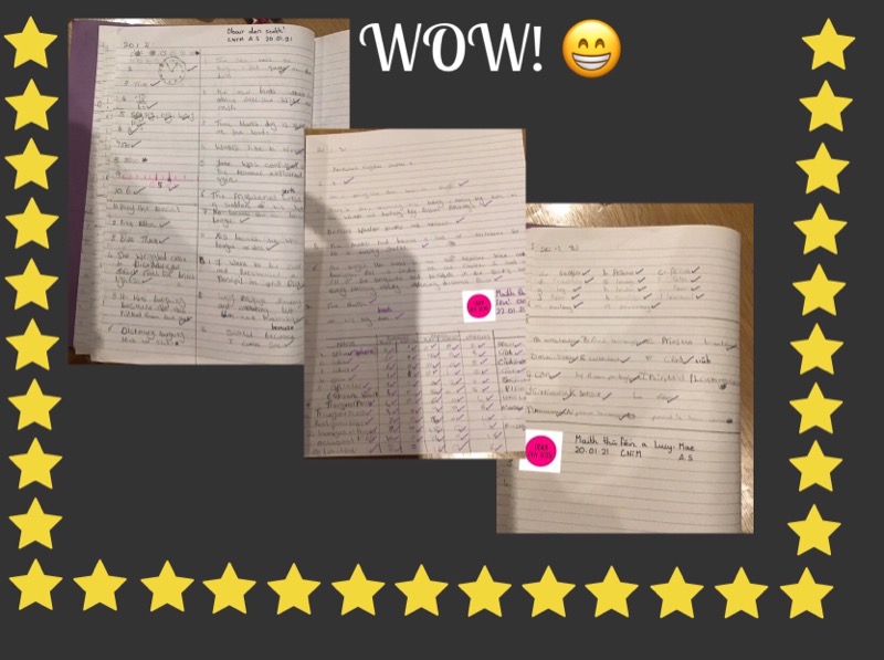 Bíonn na páistí ag obair leo an t-am ar fad ag déanamh iarrachta a gcuid oibre a fháil ar an bhalla WOW. Rinne na páistí seo a seacht ndícheall obair iontach a dhéanamh le linn na seachtaine seo agus d'éirigh leo obair ar ardchaighdeán a chur i gcrích atá le feiceáil ar an bhalla WOW!